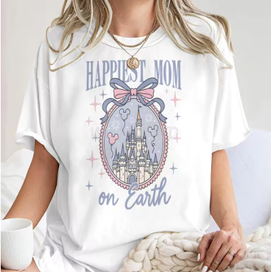 تيشيرتات بتصميم قلعة عتيقة، قمصان عيد الأم الجمالية بأكمام قصيرة، تيشيرتات نسائية