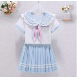 طقم تي شيرت بياقة وتنورة مطوية للأطفال