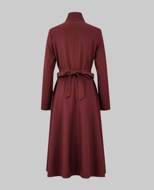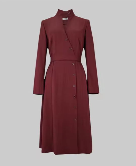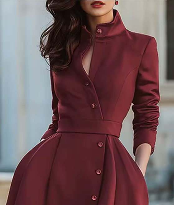 فستان نسائي عالي الخصر بحزام وياقة واقفة