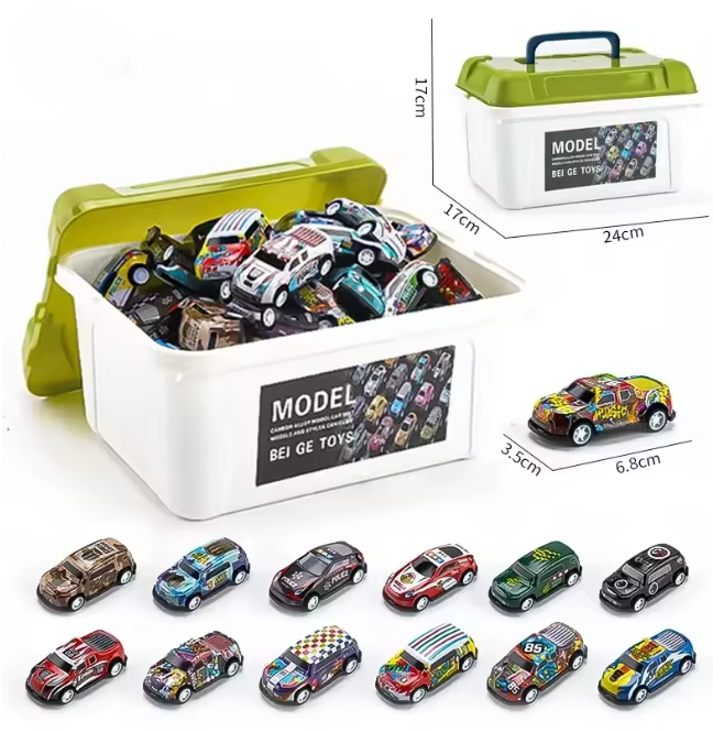مجموعة نماذج سيارات صغيرة مصنوعة من خليط معدني مع صندوق تخزين ألعاب سيارات