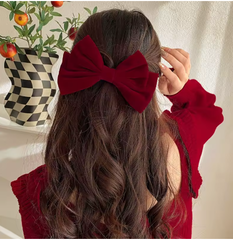 مشبك شعر كبير من المخمل الأحمر