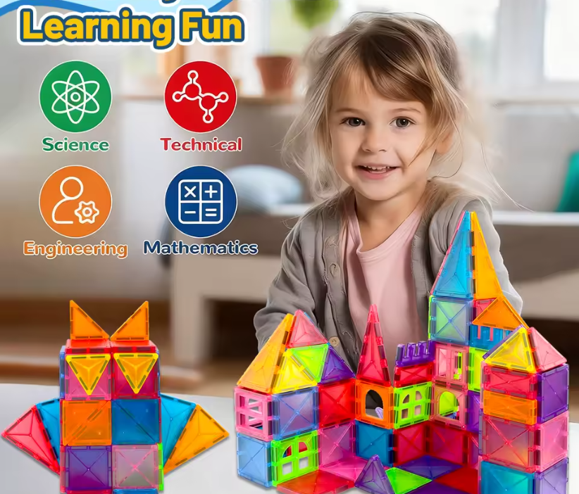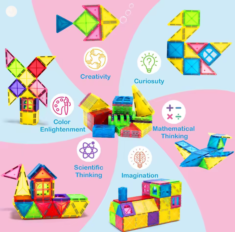 مجموعة بناء مكعبات البناء المغناطيسية لعبة تعليمية حسية مونتيسوري ذاتية الصنع لمدة 3 سنوات فما فوق هدايا للأطفال الأولاد والبنات